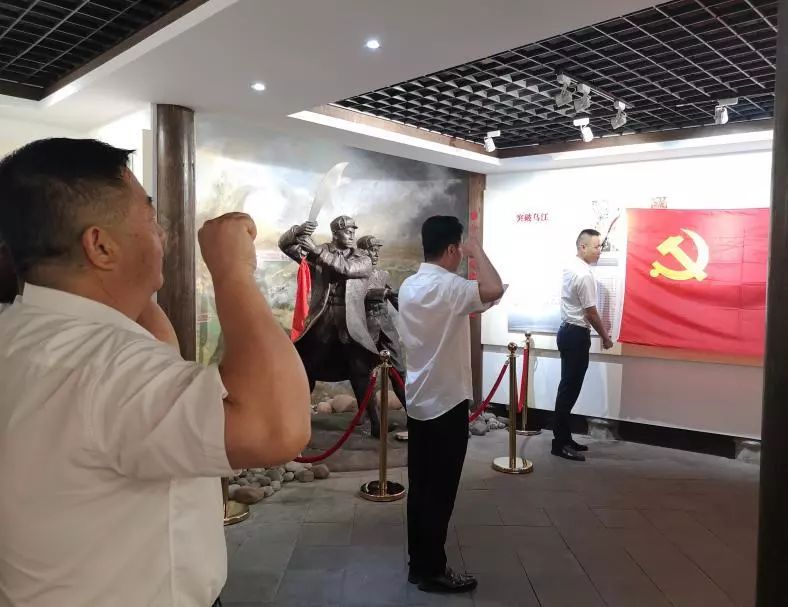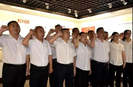 在陳列館內(nèi),陳春生書記帶領(lǐng)全體黨員、入黨積極分子面對黨旗重溫了入黨誓詞,鏗鏘的誓言響徹在紀(jì)念館內(nèi),使每位黨員再一次接受了心靈的洗禮,堅(jiān)定了初心,牢記了使命。