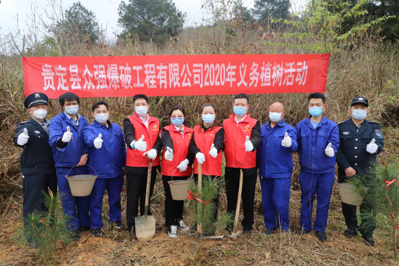 上午十點,在貴定縣眾強(qiáng)爆破工程有限公司庫房、銅仁鑫安爆破工程有限公司庫房分別展開了植樹活動,總公司股東代表羅仕銀、總公司總經(jīng)理馮波、總公司常務(wù)副總張小慶、總公司副總經(jīng)理余艷、總公司黨支部書記李明澤、分公司領(lǐng)導(dǎo)班子以及黨員干部參加義務(wù)植樹活動。植樹現(xiàn)場,大家揮動鋤頭、鐵鏟,提桶運(yùn)水,一起植樹造林。大家滿懷熱情,卯足干勁,有的挖坑、運(yùn)樹,有的扶苗、栽植,有的培土、澆水,銜接有序、配合默契,共栽植松樹、香樟樹等樹木30余棵,為初春的大地種下了一片新綠。