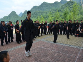 二、此次活動(dòng)邀請(qǐng)了監(jiān)管機(jī)關(guān)及客戶(hù)單位共17家到場(chǎng)觀摩指導(dǎo)。分公司經(jīng)理黃水波向蒞臨的各級(jí)領(lǐng)導(dǎo)和來(lái)賓致歡迎詞,對(duì)他們的到來(lái)表示熱烈的歡迎和由衷感謝。室外科目為跳繩、接力賽、拔河三個(gè)項(xiàng)目。跳繩每隊(duì)為3名隊(duì)員,記集體總成績(jī),各大、中隊(duì)精心挑選出各自跳繩尖子,積極為參賽人員吶喊、助威,一個(gè)個(gè)參賽的帥小伙瞬間變成了蹦蹦跳跳的“小女生”。接力賽為6乘50米,各中隊(duì)長(zhǎng)抽選運(yùn)動(dòng)健將,為著各自的榮譽(yù)和不服輸勁頭在賽場(chǎng)上拼命沖刺。最激烈的當(dāng)數(shù)拔河比賽了,各參隊(duì)每隊(duì)為10人,分為淘汰賽、半決賽和決賽,各大、中都將“大塊頭”、“大胖墩”推上賽場(chǎng),隨著裁判員的一聲哨音,現(xiàn)場(chǎng)仿佛炸開(kāi)了鍋,在旁觀加油鼓勁的人員似乎比拔河人員更賣(mài)力,邀請(qǐng)到的客戶(hù)單位領(lǐng)導(dǎo)也都在為各自派駐中隊(duì)參賽隊(duì)員加油,活動(dòng)氛圍瞬時(shí)達(dá)到頂峰。