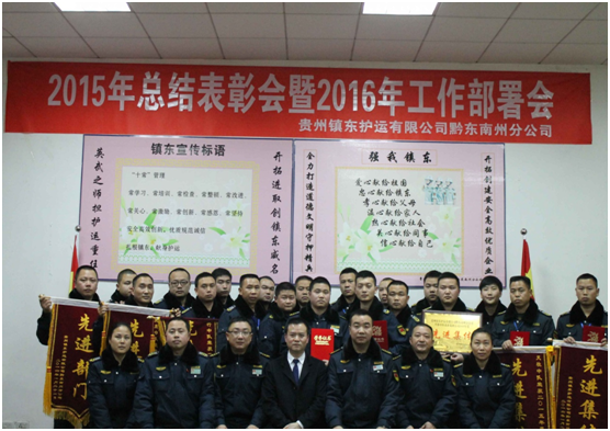 會上,貴州鎮(zhèn)東護運有限公司副總經(jīng)理羅仕銀、黨總支副書記陳旭永、銅仁本部負責(zé)人陳葉、黔東南州分公司負責(zé)人黃水波、六盤水市分公司負責(zé)人夏誠豇依次匯報了2015年工作總結(jié)和2016年工作計劃,同時對2015年先進個人、先進集體、安全特別貢獻及特困人員進行了頒獎及慰問。